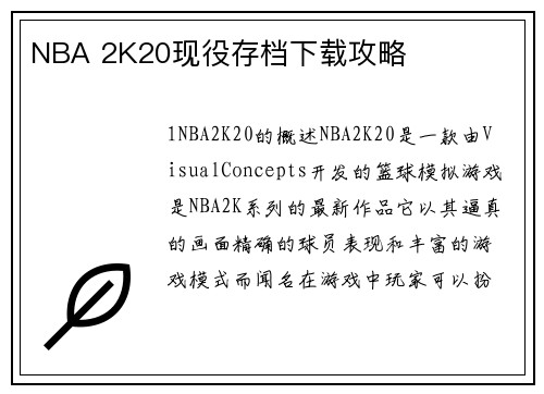 1. NBA 2K20的概述 NBA 2K20是一款由Visual Concepts开发的篮球模拟游戏,是NBA 2K系列的最新作品。它以其逼真的画面、精确的球员表现和丰富的游戏模式而闻名。在游戏中,玩家可以扮演现实中的NBA球员或创建自己的球员,并参加各种比赛和挑战。为了增加游戏的趣味性和真实感,...